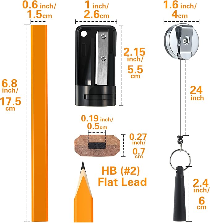 - Package Include: there are 12 pieces of wood flat carpenter HB pencils, 1 retractable pencil holder and 1 manual pencil sharpener in your package, 14 pieces in total; The carpenter kit comprehensively provides the marking tools you need when doing woodwork