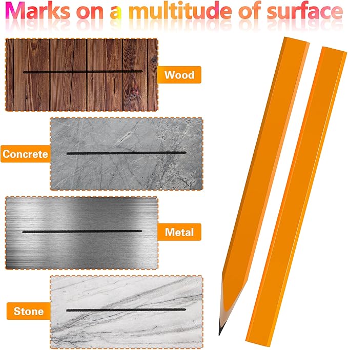 - Widely Applied: the flag wood pencils are widely applied in woodwork marking, plastic material marking, paper product marking, concrete marking and so on; The carpenter marking set is built to survive all kinds of work bench, and tool bags, and will be loved by woodworkers, building construction workers, DIY worker, masons, home service providers