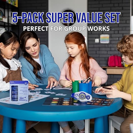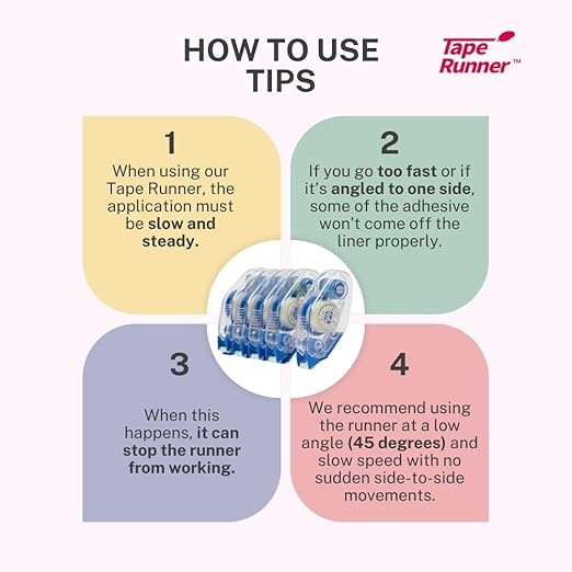 TAPE RUNNER - Double Sided Adhesive with Dispenser Roller Included - Acid Free, Sticky, Clear & Transparent - Ideal for Scrapbooking, Crafts & More - Mini (197 inches per Cartridge), 5 Cartridges