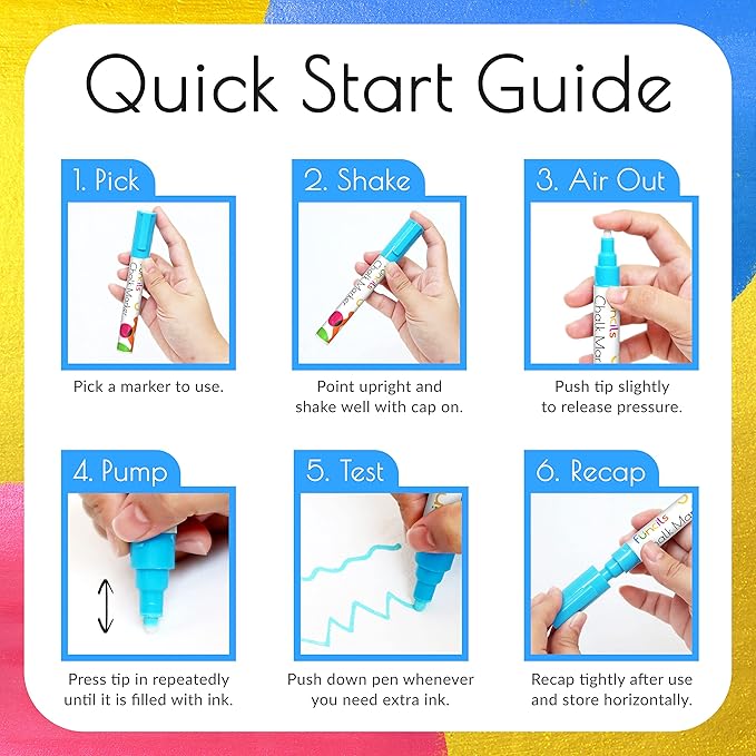 - Non-Toxic, Mess-Free Chalk Marker - These liquid window chalk pens for chalkboard erasable, dustless, non-toxic and safe for use at home.