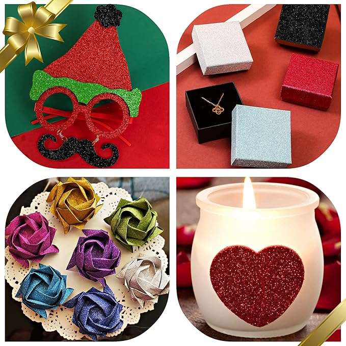 - Material: High quality 250gsm/92lb colored glitter paper, the heavyweight glitter cardstock is not easy to deform and the glitter will almost never fall off.