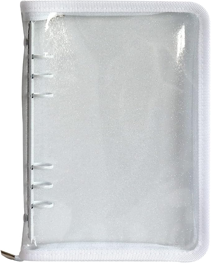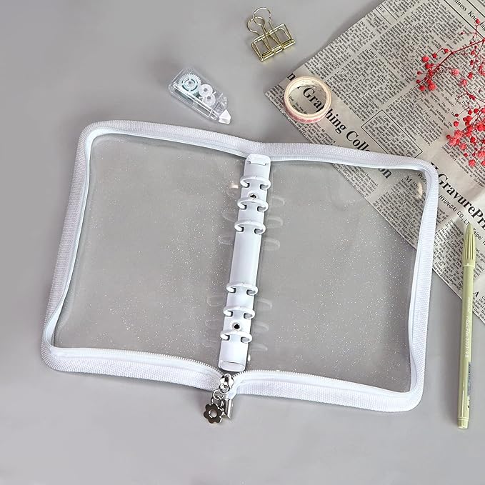 Multibey A5 Binder Cover Clear Soft PVC 6-Ring Binder Budget Evelopes System with Zipper Planner Organizer Refillable Notebook Journal Binder (White, A6)