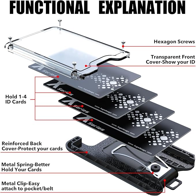 - Sturdy and Durable- LIUGX Card Holder made of polycarbonate material, more durable than other plastic sleeves,anti-fall, anti-stress. Better protect your ID card/credit card/work badge/driver’s license etc. Especially at the mounting point with the metal clip, we have thickened it to make it more sturdy, not easily cracked.