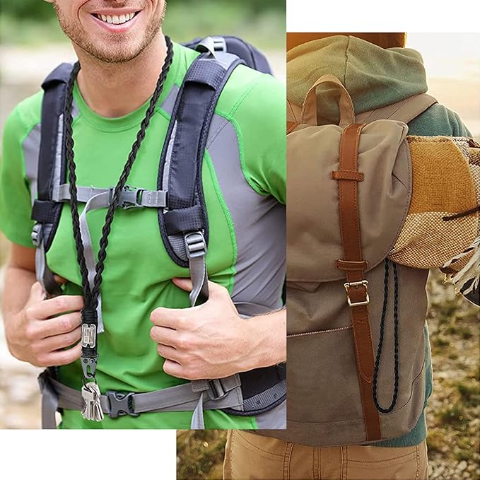 - 【Widely Used】As a cool neck lanyard key chains, you can connect your keys, ID badges, camera, flashlight, wallet, whistle and etc. You can also remove the parachute rope, which can be used to tie shoes, hang clothes, fix things, and even tent lines. You can easily and confidently enjoy any outdoor activities!