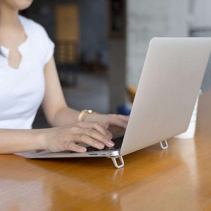 - 【Ergonomic Design】This mini laptop stand can lift the laptop to provide the most comfortable viewing position and operating angle. Its ergonomic design allows you to easily watch and type, and effectively relieve the neck during continuous typing Pain in the neck and shoulders.