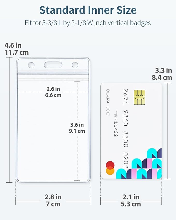 - Vertical Holder: Measures 3.6" L x 2.6" W in inner size. Suitable size for holding up to 3 credit card sized cards like proximity card, ID card, driver’s license, school pass, RFID badge, clipper card, etc.