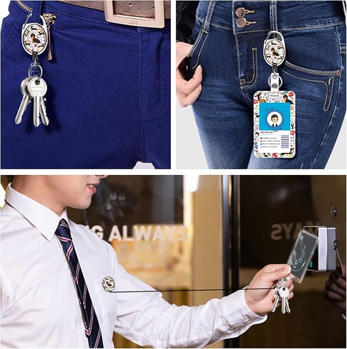 - Versatile Usage: The retractable badge reel is made of premium plastic and steel, sturdy and light-weight. It is easy to clip on to a belt, backpack, pocket or anywhere you like, with 360 rotating carabiner clip. You can attach your keys, student cards, or ID cards to the key holder easily and conveniently. Great for nurses, doctors, maintenance, office staff, business people, teachers, students, factory workers, drivers, etc