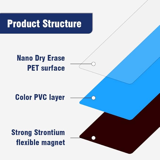 - Material: Magnetic labels dry erase are made of soft rubber, suitable for adhering to metal and magnetic surfaces.The magnetic strip labels are strong enough to stick to magnetic surface, easy to moved,stable and reliable without falling.