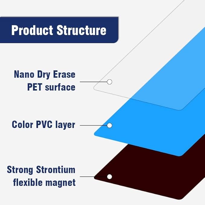 - Material: Dry erase magnetic labels are made of soft rubber, suitable for adhering to metal and magnetic surfaces.The magnetic strip labels are strong enough to stick to magnetic surface, easy to moved,stable and reliable without falling.