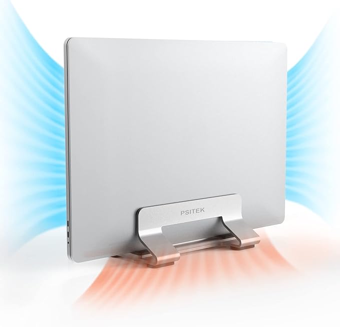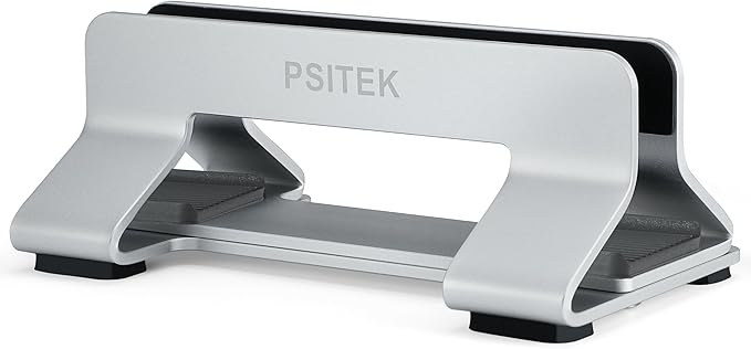 - Stylish and Practical: The Psitek Aluminum Vertical Laptop Stand Dock Holder's sleek and modern design adds a touch of style to your workspace. Perfect for use as a desk laptop holder, laptop dock stand, laptop holder stand, or vertical laptop stand.