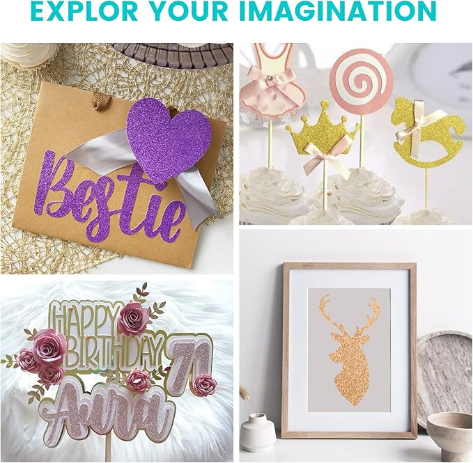 - 【Multi-functional Feature】HTVRONT Cardstock Glitter can apply to many crafting and daily scenarios. With this multi-functional pack of sparkly paper, your innovative imagination can be broadened from greeting cards, invitations, packaging, decorative art, cake decoration, origami art, scrapbook, gift decoration, photo albums and notebook covers, decorations for birthday parties, marriage ceremonies, festival events, and so on. The Glitter Paper for cut machine helps light up your spark