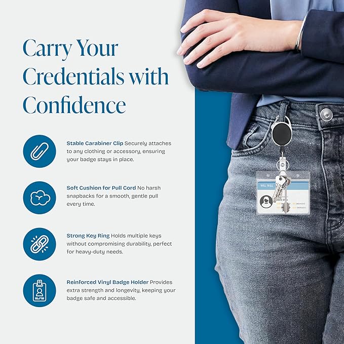 - 【Top Quality】Upgraded and reinforced construction makes the most solid and durable retractable badge holder of this kind on the market. we're different in all of these products that look the same!