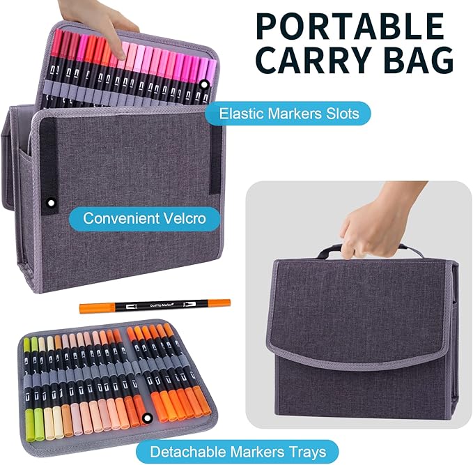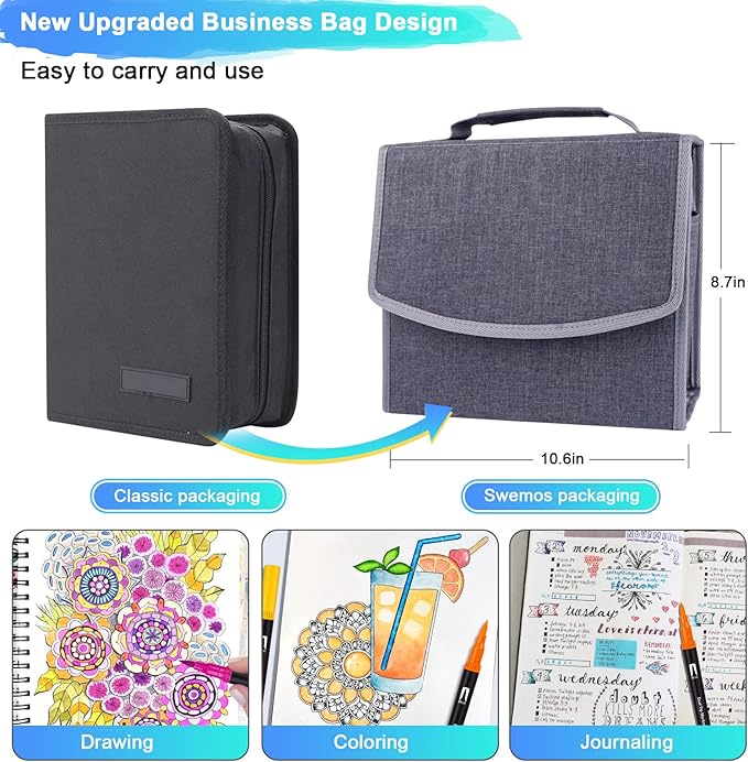 - ❤Swemos UNIQUE DETACHABLE BAG DESIGN❤: Easy to carry and use. Different from the normal black bag. These art markers are all in a beautiful zipper bag. Just disassemble markers from the bag, you will get a normal portable bag that can put in anything you want. With Handle, reusable, portable, and durable. Beautiful gift choice!