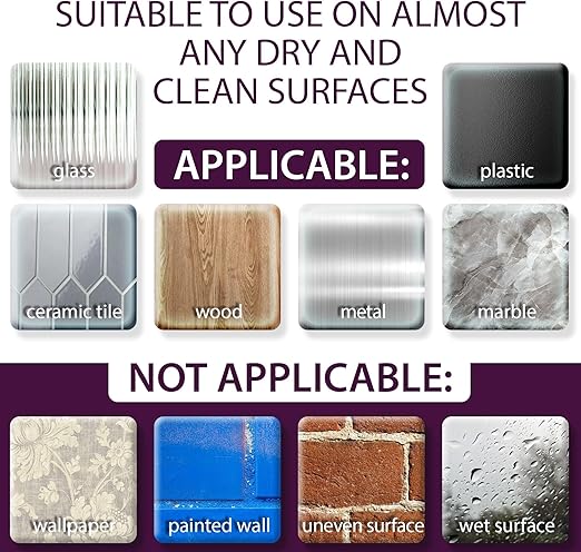 - 🦎 SURFACES: beware of tacky putty extra stickines! We DO NOT advise attaching sticky tape dots to painted walls, drywall or wallpaper. Best matches are smooth solid surfaces as glass, tiles, plastic, metal, etc.