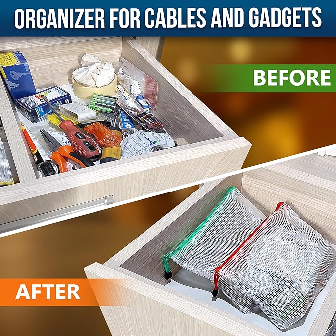 - ☑️ Package includes: 16 mesh zipper bags. A4x4, A5x4, A6x2, Billx2, B6x2, B8x2, Different colors for better sorting your items.