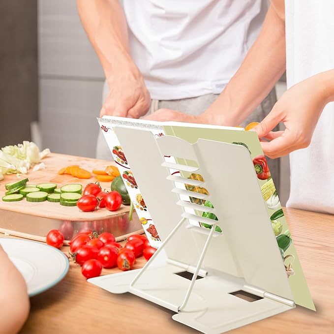 - 【Adjustable Book Holder】 Book Holder have six reading positions,The multiple notches on the backrest can adjust its height and angle.Adjust the height between the eyes and reading books or documents well