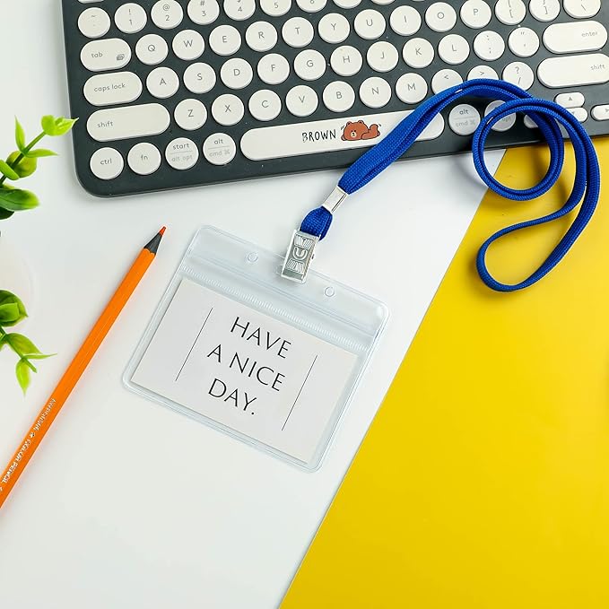 - INCLUDES : 100 horizontal name tag badge holders, 100 lanyards. lanyards for id badges