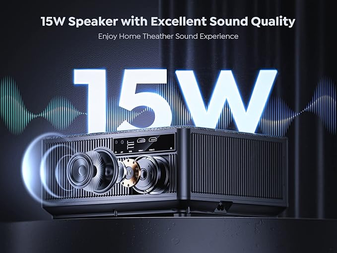- ✅Home Theater Movie Projector — Giant and a clear display screen with powerful and more original sound brought by a built-in HIFI 15W speaker, bring you an immersive viewing experience, your home turn into a movie theater! (The speaker also enables low, medium, and high volume options)