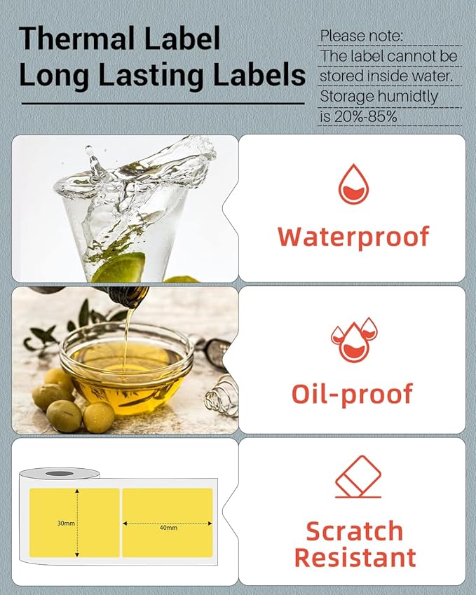 - √ Clear Printing- Phomemo self-adhesive Multi-Purpose labels are water resistant, oil resistant, abrasion resistant and strong adhesion