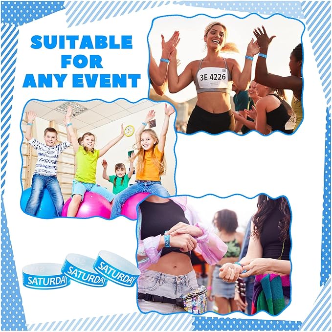 Henoyso 600 Pcs Saturday Paper Wristbands Event Wristbands Paper Bracelets Wristbands Numbered Waterproof Party Wristbands for Events Day of The Week(Blue)
