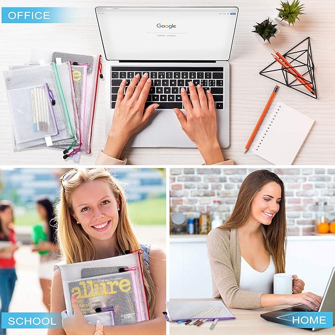 - Translucent mesh bags: This clear zippered pouch is perfect for storing important papers,prevents to reveal your privacy, but you still can identify the stuff in the file bags.Suitable for use in homes, schools, college, offices and travel, can be used to organize books, paper,photos, bills, cosmetics,etc.