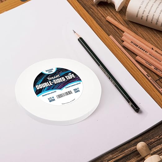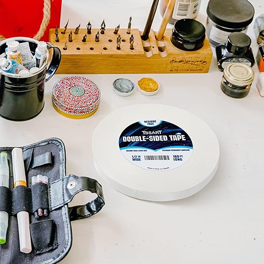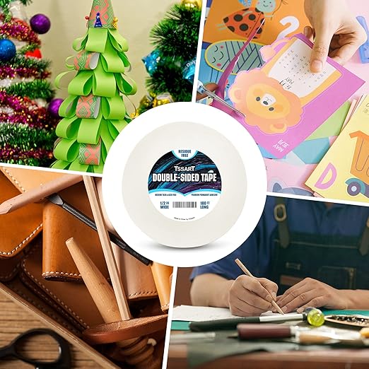 Ultra-Thin Permanent Double-Sided Tape - Double Sided Adhesive Sticky Tape for Arts, Crafts, Photography, Scrapbooking, Tear-by-Hand, Paper Backing - Acid Free 1/2Inch Wide 180FT Long