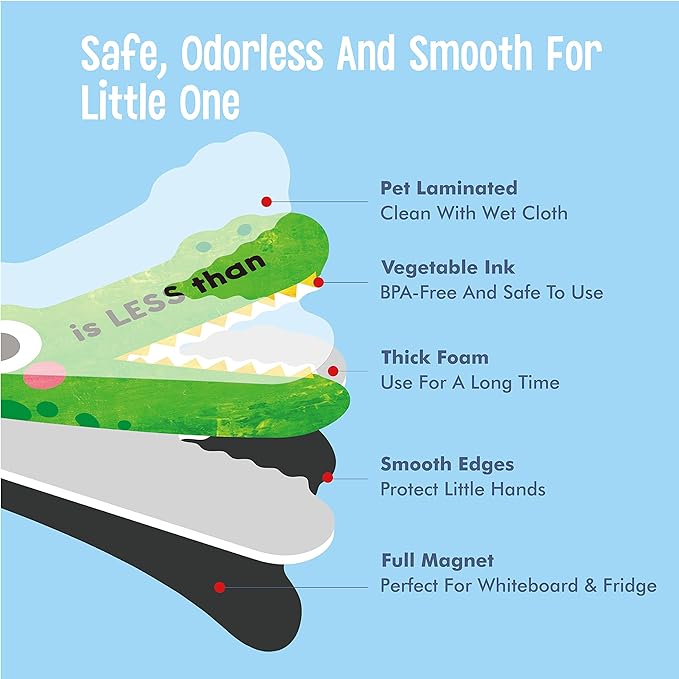 - Make Math Interesting: It comes with 3 pieces of large math signs, including the greater than, the less than and the equal to symbols. This magnetic learning tool is a fun and memorable way to teach students the concept of numeric relationships. It is a practical demonstration tool for teachers and students.