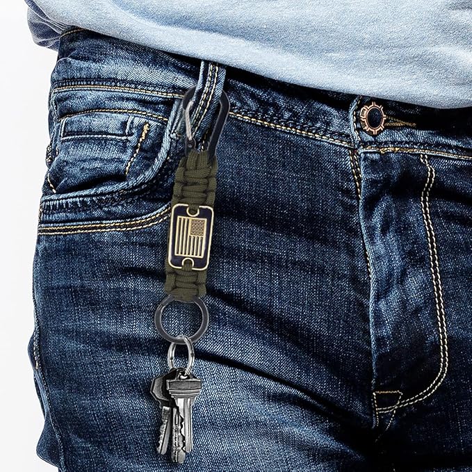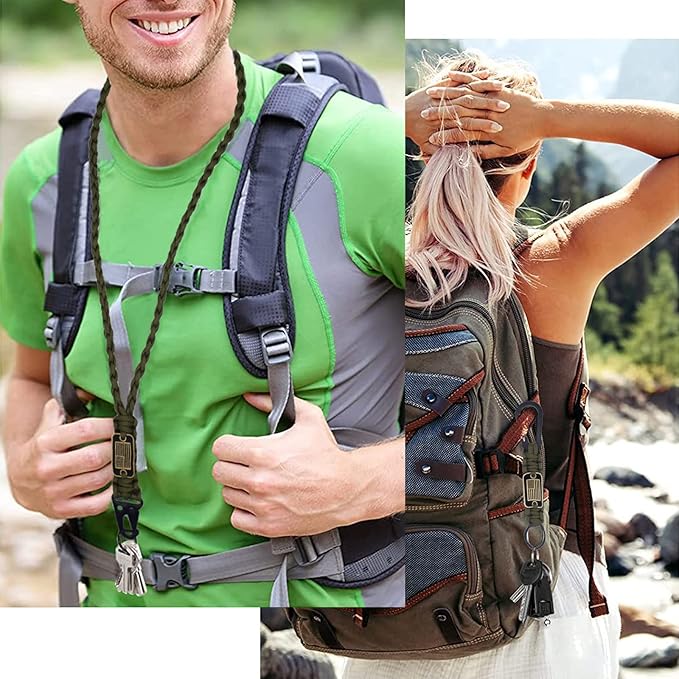 - 【Widely Used】As a cool lanyard key chains, you can connect your keys, ID badges, camera, flashlight, wallet, whistle and etc. You can also remove the parachute rope, which can be used to tie shoes, hang clothes, fix things, and even tent lines. You can easily and confidently enjoy any outdoor activities!
