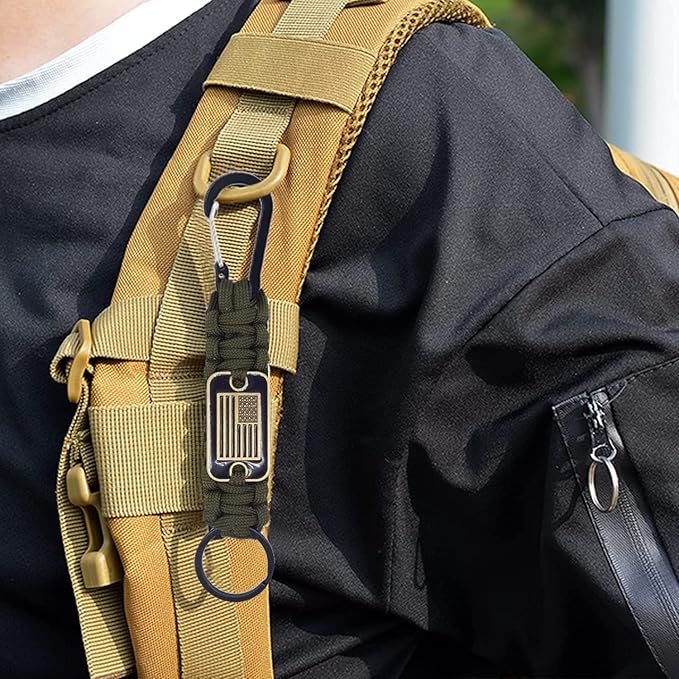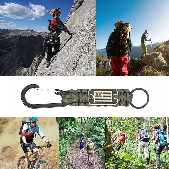 Paracord Keychain with USA Flag, Paracord Carabiner Keychain Clip, Braided Lanyard Utility Ring Hook Outdoor Camping Kit