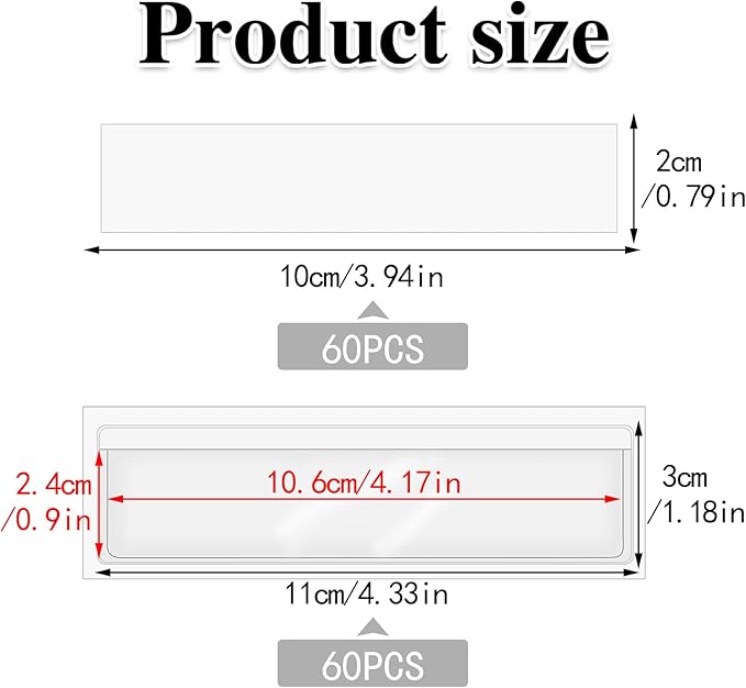 - 【Package】Package contains 60 pack 1.2" x 4.3" clear label pockets and 60 pieces blank 0.8" x 3.9" labels that can be used together, enough quantity to meet your needs.