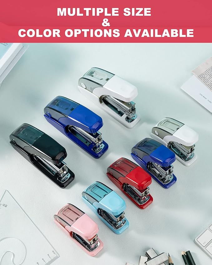 - ๐[20 Sheet Capacity] - This compact design half strip stapler holds up to 75pcs 24/6 staples or 105pcs 26/6 staples, fits properly on smaller desks. Fully meet the daily work, office & school needs.