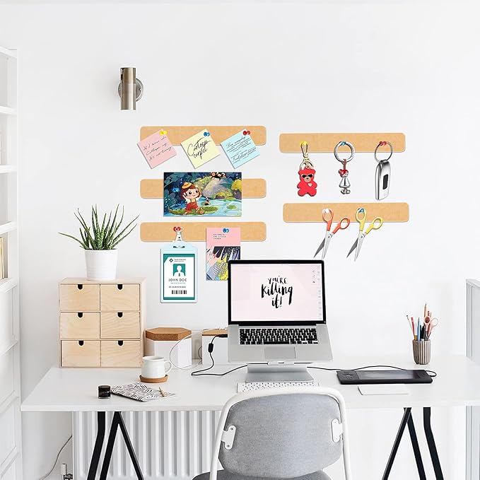 - 【Widely application】:Our 5 pack felt pin board bar strips can be used in different occasions to display pictures, notes, schedules, reminders ,what's more, you can also hang pendants like keys and necklaces.Feel free to use on the door, closet,refrigerator, bookcase, mirror, etc.