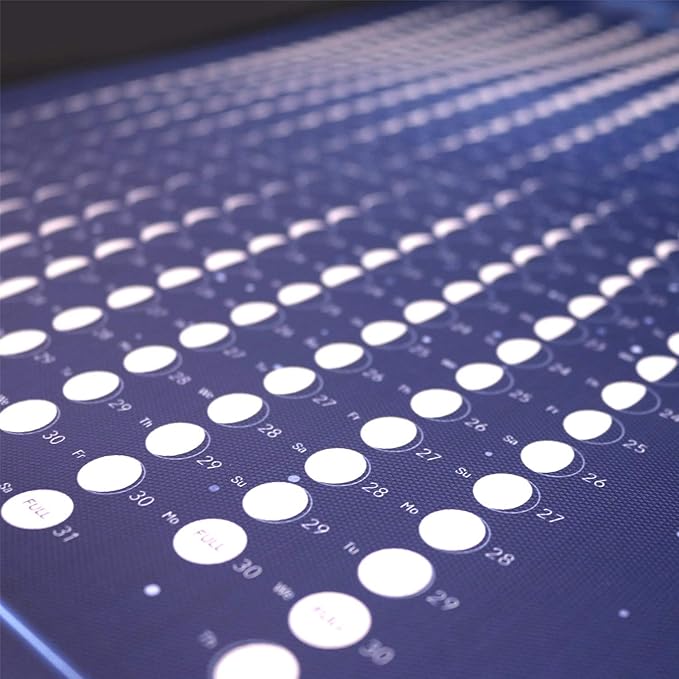 - This moon phase calendar is printed on canvas(not paper), the material is thick and sturdy, waterproof and not easy to tear. high-definition printing, special fabric texture can prevent reflection, in a very suitable viewing state.
