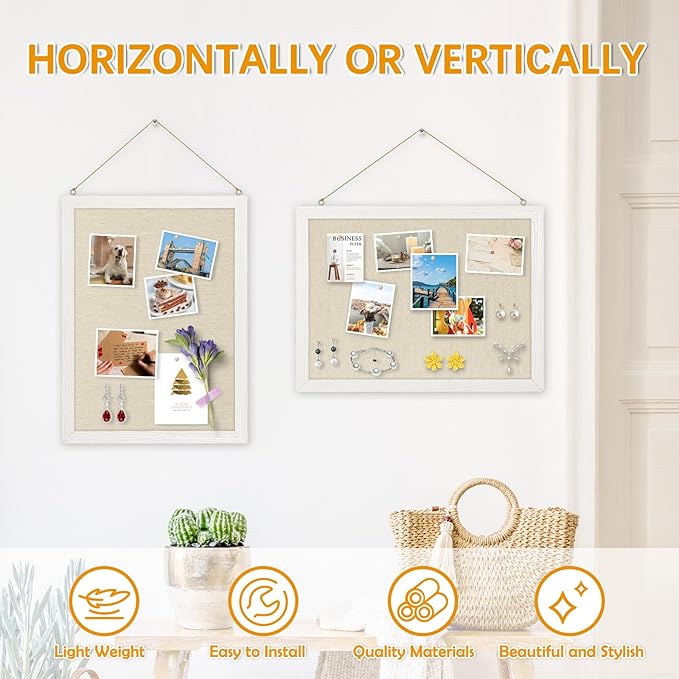 - 【Exquisite Linen Bulletin Board】 The 2-pack cork board is made of high-fiber beige linen and white pattern frame. The self-healing ability of the linen makes the pin board repairable and durable. It's decorative and practical as notice board and memo board.