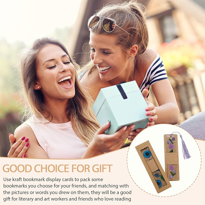 50 Set Kraft Bookmark Sleeves Resin Bookmark Holder 5.9 x 1.8'' Bookmark Cardboard Gift Boxes DIY Bookmark Blank Display Cards for Bookmark Wrapping Gift Supplies (Brown)
