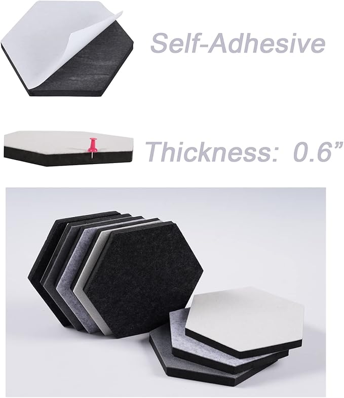 - 1. Size and Material - The size of the bulletin board is 7.0 × 6.1 inches. Each hexagon board is 0.6 inches thick, The pin won’t poke through the board. The surface of the felt board is covered with felt and the back is made of EVA, sturdy and lightweight.