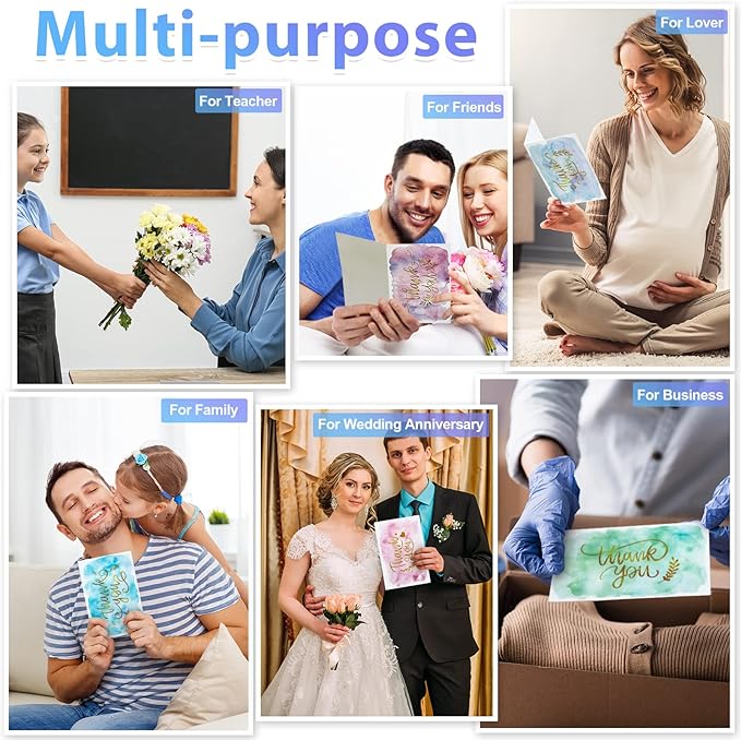 - Multiple usages: watercolor pattern thank you cards set is ideal for thanking engagements, baby and bridal showers, birthday parties, anniversaries, wedding guests, graduation, friendship day, Teacher's Day, Mother's Day, Father's Day, Thanksgiving and so on, also suitable for holding business gatherings, funerals and other occasions