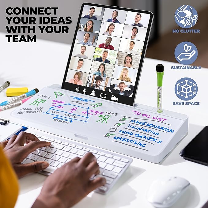 - A Perfect Fit - This 9.5x6.5x15.76” glass white board for desk fits right between your monitor and keyboard so that it's always in front of you. The dry erase desktop board won't take up much space.