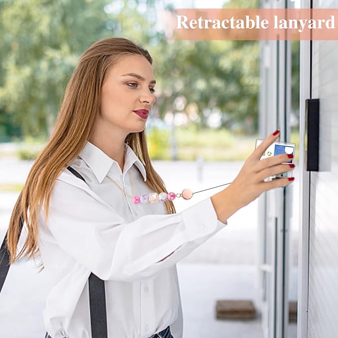 6 in 2 Set Retractable Lanyard for ID Badges, Teacher Lanyard with Badge Holders Beaded Cute Lanyards for ID Badges Keys Teacher Appreciation Gifts Office Gift for Coworkers
