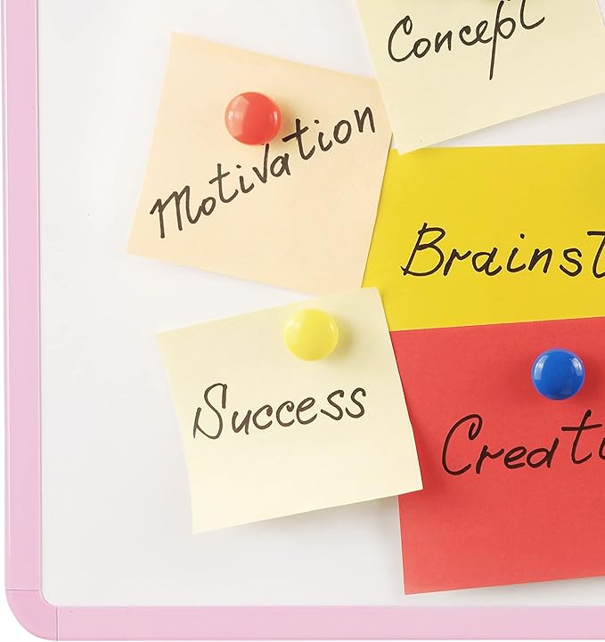 - The sleek design of this pink framed board allows it to fit seamlessly into any modern office or school setting while providing the perfect canvas to jot down reminders, thoughts, or ideas.