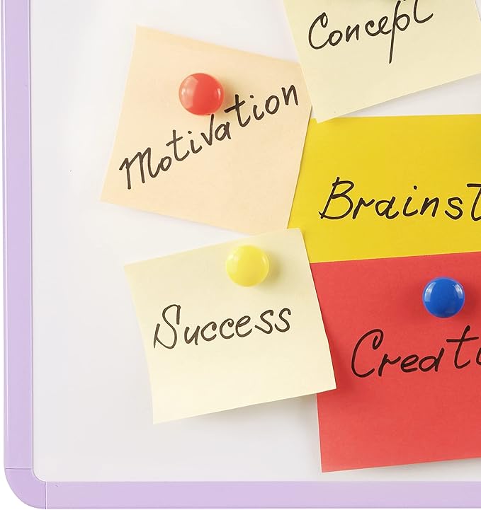 - The sleek design of this purple framed board allows it to fit seamlessly into any modern office or school setting while providing the perfect canvas to jot down reminders, thoughts, or ideas.