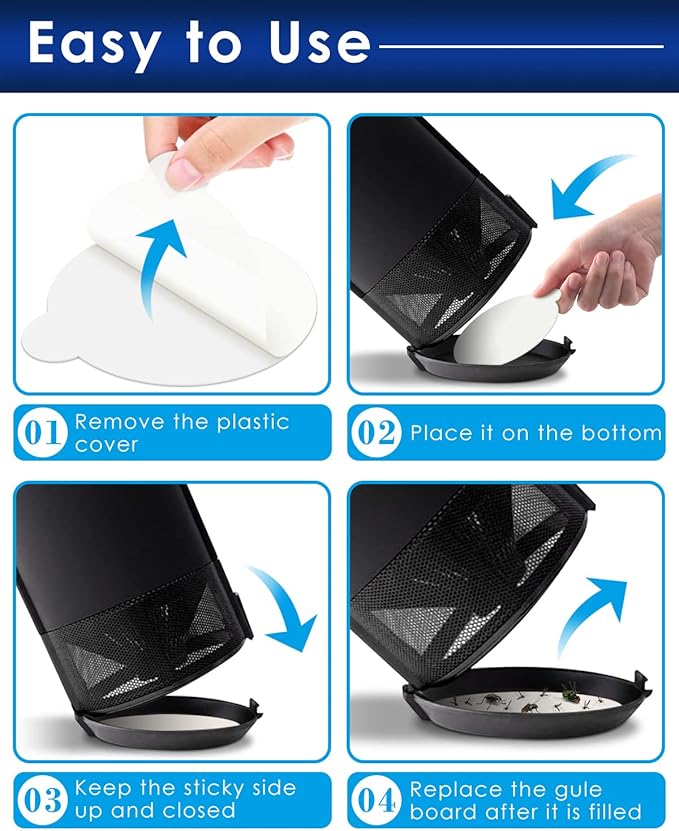 - 【Easy to Use】-First turn off the power, then remove the plastic cover from the glue boards, and finally place the glue boards.