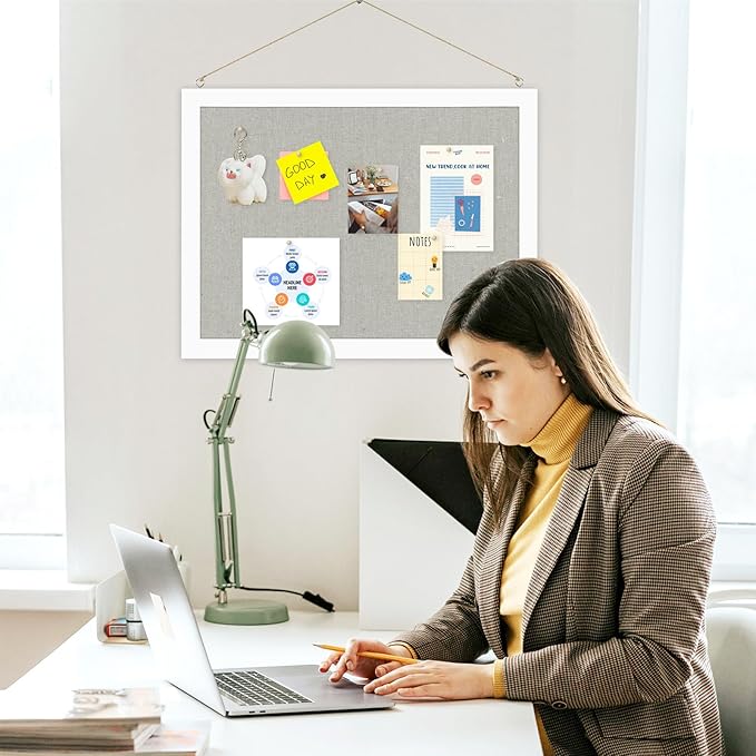 - [Trustworthy Material] -- We use high-fiber linen to make the surface of the bulletin board, which is self-healing and durable. The 0.7" thick white frame is strong enough and lightweight. You are able to hang and remove them without effort.