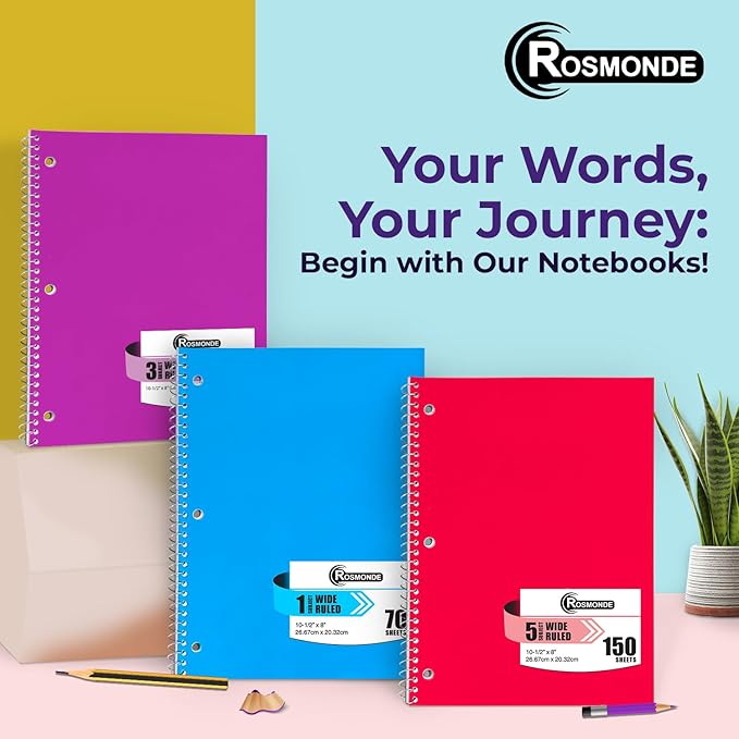 - A CLASSROOM CLASSIC: This 50-pack of 1-subject notebooks helps you identify your subjects at a glance with color-coding efficiency. You can always rely on Rosmonde notebooks to keep up with your busy day! Rosmonde Spiral Notebooks come with high quality sturdy and ink-bleed resistant paper, which makes them the perfect choice for Home, School or Office needs.