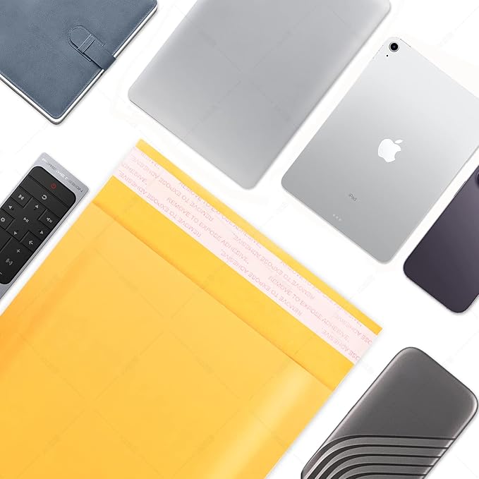 DaSen Kraft bubble mailers 6x9 Inch 100 Pack,Self-Sealing Paper Envelopes for Packaging,Strong Adhesion Envelope Mailers, Small Waterproof Cushioned Padded Shipping Bags Yellow #0