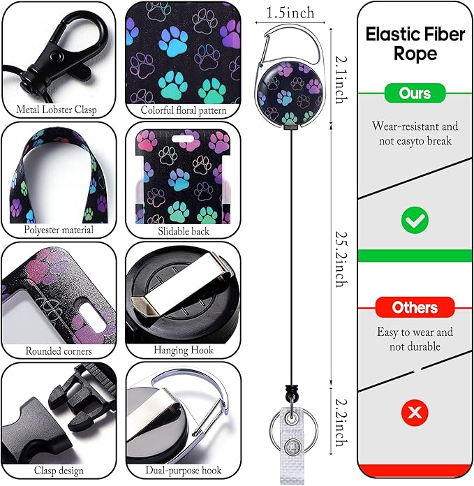 - Stylish Designs: Our lanyards for ID badges come in a variety of stylish designs, including the popular teacher lanyard and badge holder retractable clip and key ring options,ID holders for badges also features a unique and eye-catching printing, it’s a cute badge holder & cute lanyard for women &retractable keychain for women with strong character,making the life not monotonous any longer.
