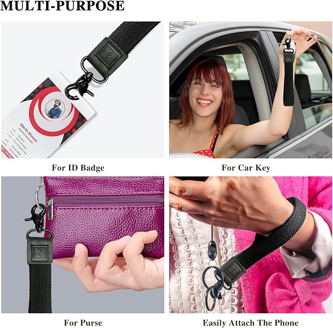 - Multi Function: Our key lanyard elastic anti-drop design wearing it around your wrist, or stuff it in your backpack or purse. The wristlet keychains for women it is a good helper to organize your small items together(car keys ,pill,photocard,airtag,key chain). Hold your essentials safe and anti-loss (airpod, cameras, cellphone). Free your hands by attach it (backpack, wallet, purse)
