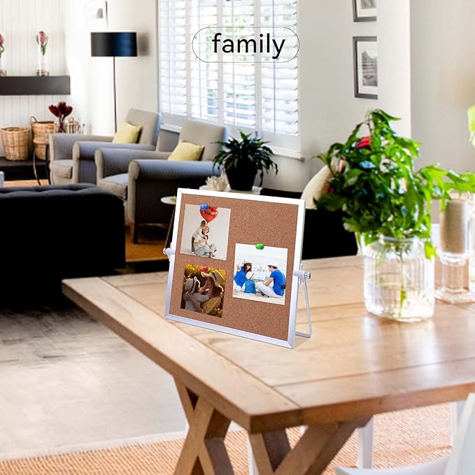 9.8"×9.8" Cork Board Bulletin Board, Double Sided Pin Board with Silver Aluminum Border, Desktop Small Cork Board with Stand Suitable for Home, Office, Desk Message Board or Picture Board