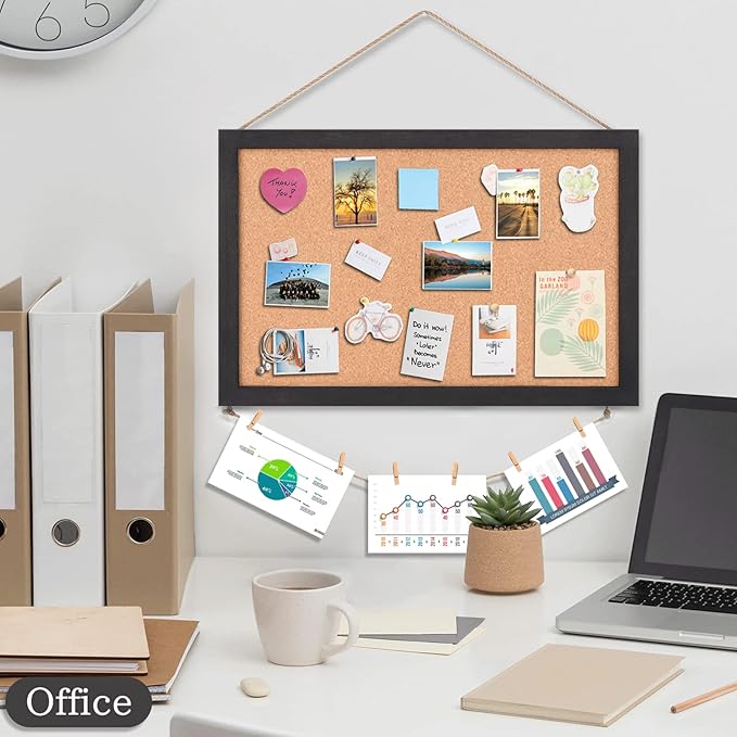 - Exquisite Design - The bulletin vision board boasts a sleek hemp rope trim at the base and comes with clips, perfect for displaying photographs, cards, and more. The push pin tracks included in the package are just the right size and color for the board. The frame is constructed using high-quality wood, ensuring impressive durability.