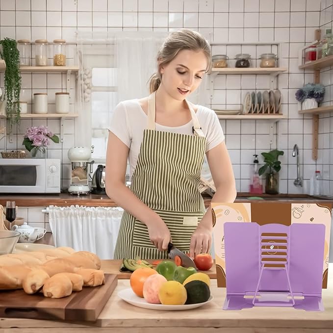 Metal Book Stand - Adjustable Book Holder for Reading (Full Purple)